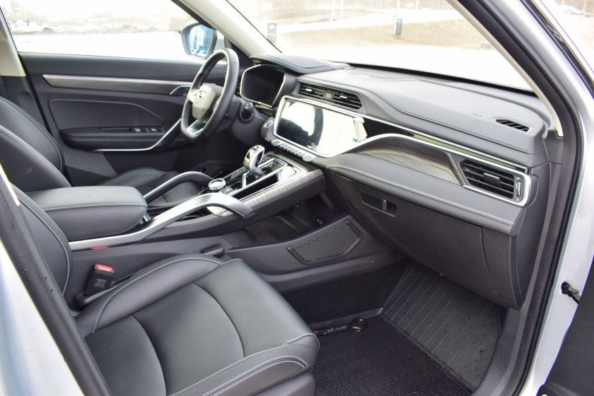 В салоне — эргономичная обивка из кожи, которая придаёт интерьеру солидный вид. Водительское сиденье регулируется электрорегулировками, включая настройку по высоте, а руль можно настроить по высоте и вылету — это позволяет подобрать оптимальное положение для вождения. Подогрев всех сидений, обогрев рулевого колеса и зеркал, а также обогрев зоны стеклоочистителей и форсунок стеклоомывателей делают поездки комфортными даже в холодное время года.